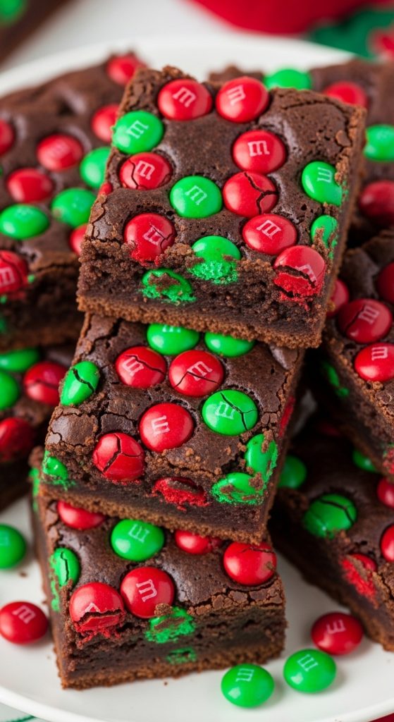 M&M Christmas Brownie Bars are festive, colorful, and perfect for holiday gatherings. Packed with chocolate chips and vibrant red and green M&Ms, these chewy bars offer the perfect mix of fudgy brownie and soft cookie textures.