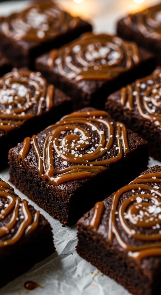 Salted Caramel Christmas Brownies are decadent, gooey, and irresistibly rich. A fudgy brownie base is swirled with smooth caramel sauce and finished with a sprinkle of flaky sea salt for the perfect balance of sweet and salty holiday flavor.