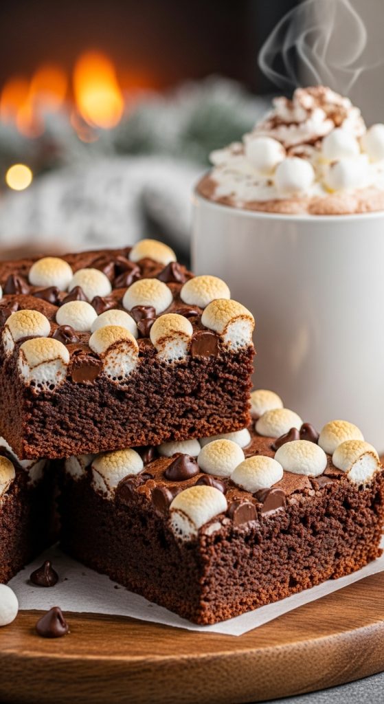 Hot Cocoa Brownies with Marshmallows combine the cozy flavors of a warm cup of hot chocolate with the fudgy richness of classic brownies. Topped with gooey mini marshmallows and melted chocolate, these brownies deliver the ultimate winter comfort in every bite.