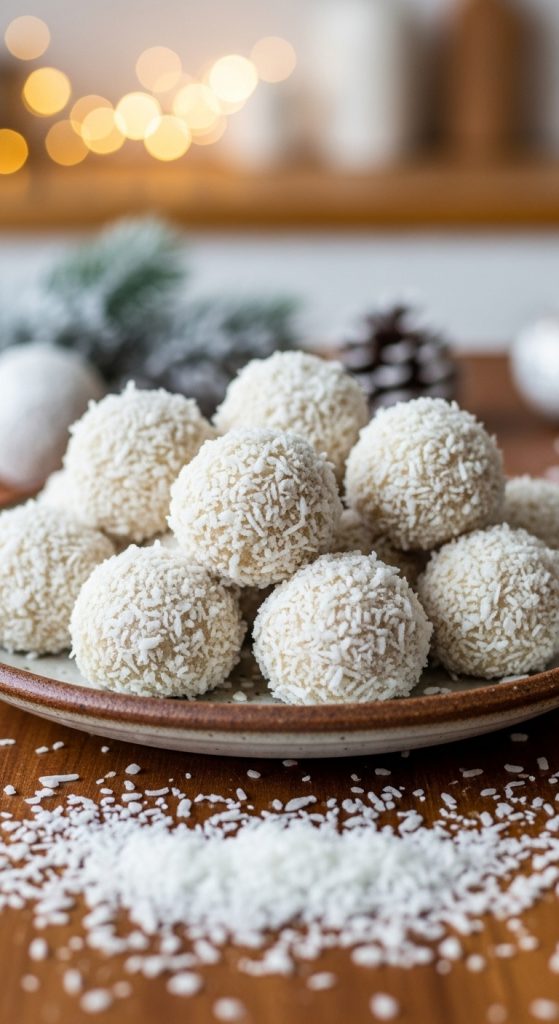 Soft, chewy, coconut-covered snowball-style treats made with only three simple ingredients. No baking required, fast to prepare, and perfect for holiday platters.