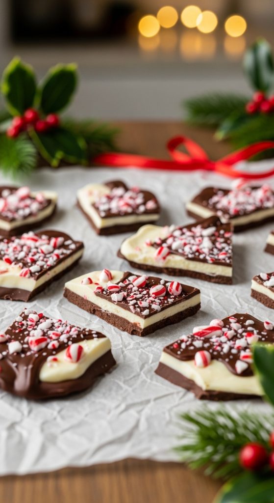 A fast, festive, no-bake Christmas dessert made from melted chocolate layered with crushed candy canes. Perfect for gifting, snacking, or adding to holiday treat trays.