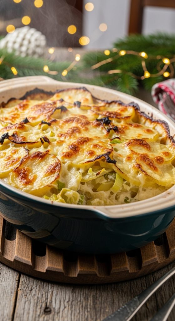 This Potato, Leek & Gruyère Casserole is a sophisticated yet deeply comforting Christmas side dish. Thinly sliced potatoes are layered with buttery sautéed leeks and covered in a creamy Gruyère sauce that bakes into a bubbling, golden masterpiece. The flavor is rich, earthy, and elegant—exactly the kind of dish that elevates any holiday menu.