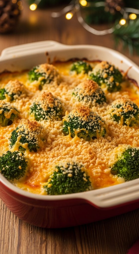 This Broccoli Cheddar Christmas Casserole is rich, creamy, and filled with holiday comfort. Tender broccoli is coated in a velvety cheddar sauce, then topped with a buttery, golden breadcrumb crust. This dish is easy to assemble, bakes beautifully, and is perfect for Christmas dinner or any winter gathering.