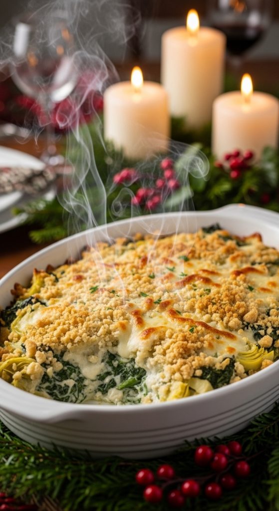 This Spinach & Artichoke Holiday Bake takes the classic party dip and transforms it into a warm, hearty, crowd-pleasing casserole perfect for Christmas gatherings. Creamy spinach, tender artichokes, rich cheeses, and a crisp golden topping create a festive dish that pairs beautifully with any holiday spread.