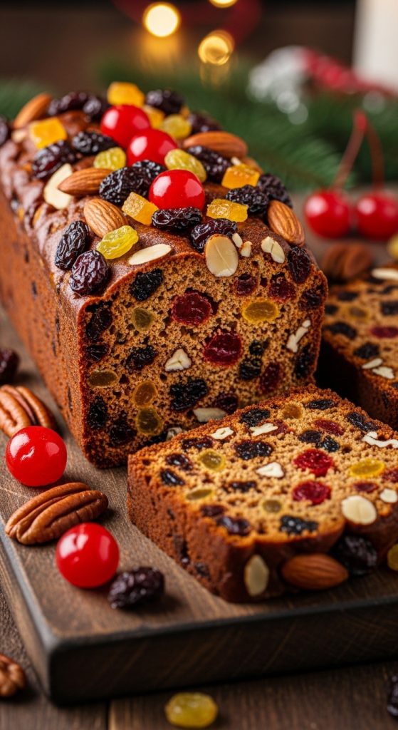 - Slice thinly — fruitcake is rich and flavorful.