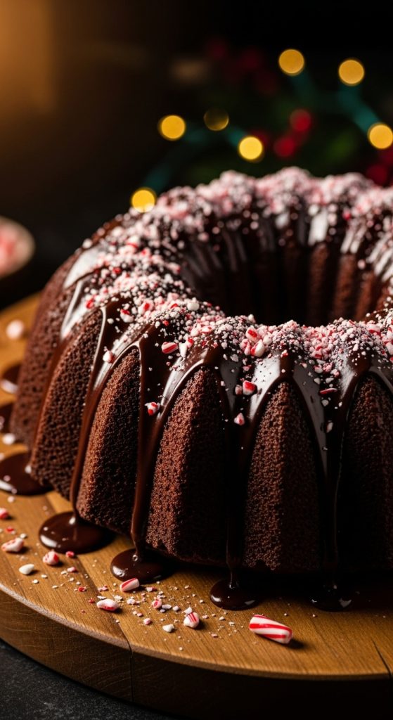This Chocolate Peppermint Bundt Cake is rich, moist, and filled with deep chocolate flavor balanced by a refreshing peppermint twist. Topped with a glossy chocolate glaze and crushed candy canes, it’s an eye-catching holiday dessert perfect for Christmas parties and winter gatherings.