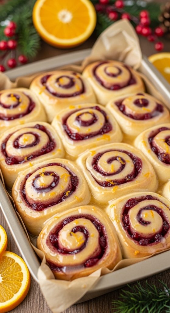 These festive rolls are a holiday twist on classic cinnamon rolls—bright with fresh orange zest and filled with a homemade cranberry filling that adds tang, sweetness, and beautiful color. Perfect for making ahead and baking fresh on Christmas morning.