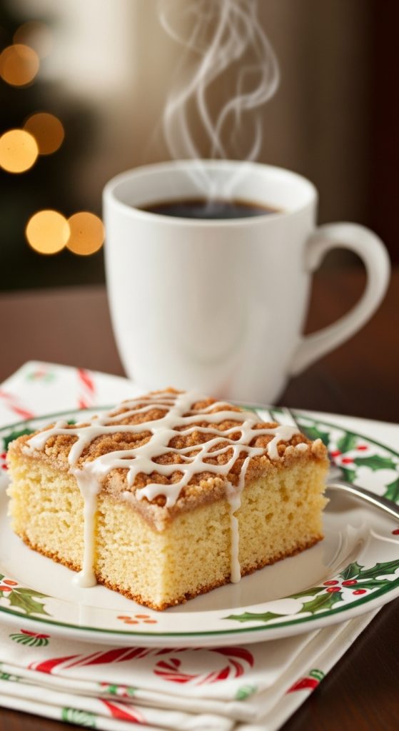 Cut into generous squares and serve with coffee, chai, or eggnog. Garnish with powdered sugar and cinnamon for a festive finish.