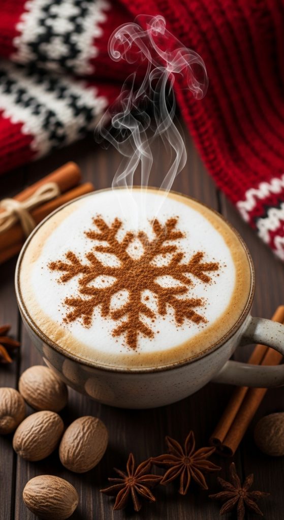 The Winter Spice Cappuccino is a warm, aromatic Christmas coffee that blends bold espresso with a festive blend of cinnamon, nutmeg, clove, and vanilla. Topped with thick, velvety foam, this cappuccino delivers the perfect balance of holiday spice and creamy richness. It’s cozy, comforting, and tastes like winter mornings wrapped in a blanket. Ideal for December mornings, gift wrapping, or a peaceful evening by the tree.