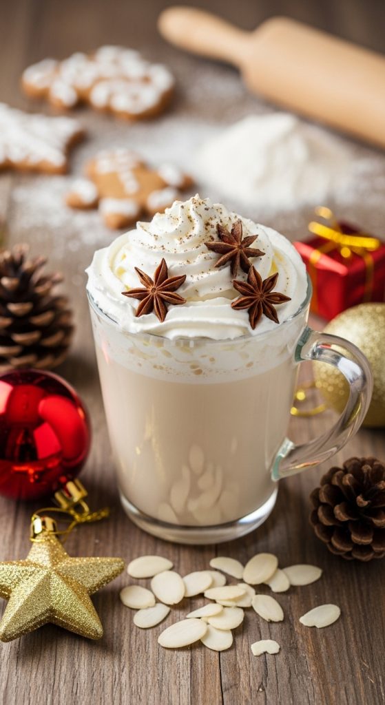 Top with whipped cream if desired. Add a sprinkle of nutmeg, cinnamon, or crushed almonds for a festive finish and extra flavor.