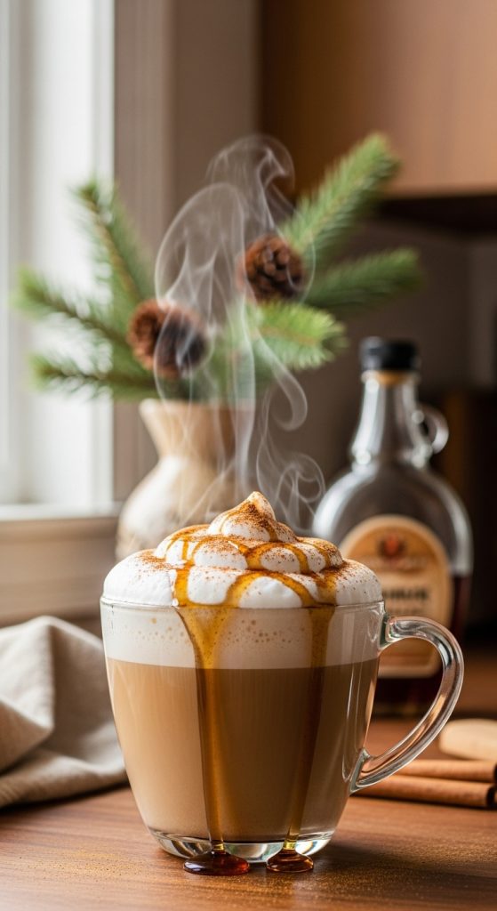 Cinnamon Maple Cappuccino is a warm, cozy holiday coffee that balances the natural sweetness of pure maple syrup with the comforting spice of cinnamon. Topped with a thick, velvety cap of frothed milk, this cappuccino delivers a bold espresso backbone softened by rich winter flavors. It’s simple, festive, and perfect for chilly December mornings or as a sweet treat during holiday evenings.