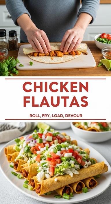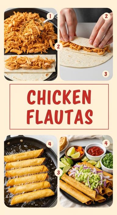 For a lighter version, brush the rolled flautas with oil and bake at 400°F (200°C) for 18–20 minutes until crispy.