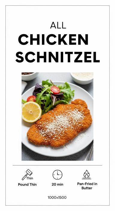 Chicken Schnitzel is a classic dish featuring thin chicken cutlets breaded and fried until golden and crispy. Originating from Central Europe, this dish is known for its crunchy coating and juicy interior. It is simple to prepare and can be served with a variety of sides such as potatoes, salads, or lemon wedges for a bright finish.