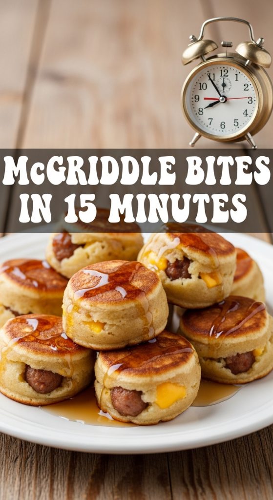 Mini McGriddle Bites are a fun twist on the classic McGriddle sandwich. They have a fluffy pancake outside that mixes sweet and savory. Inside, you’ll find sausage and cheese, with optional extras for your taste.