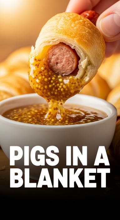 Pigs in a blanket are a favorite at parties and a comfort food classic. They are small sausages or hot dogs wrapped in dough and baked until golden. This simple dish is loved for its savory taste.